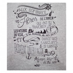 Motif : Sérigraphie artisanale à l'encre à eau respectant la norme Oeko-Tex 100, sans particules nocives. Le design met en scène les paroles de la chanson "Aux sombres héros de l'amer" dans une typographie inspirée des pirates.