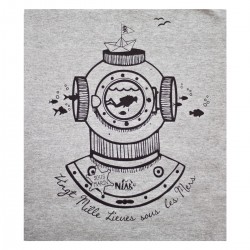 Motif : Sérigraphié* à la main avec des encres à l’eau qui respectent la norme Oeko-tex 100. Le design représente un plongeur dans un scaphandre, des poissons qui nagent autour, et un badge "sheriff sous-marin" bien stylé. Un vrai concentré d’aventure et de fun !